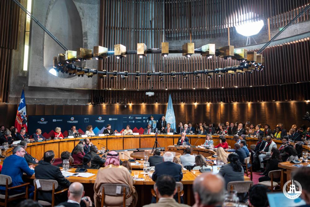↑这是8月28日拍摄的在智利首都圣地亚哥举行的首届联合国教科文组织世界教师峰会开幕式现场。新华社发(智利总统府供图)